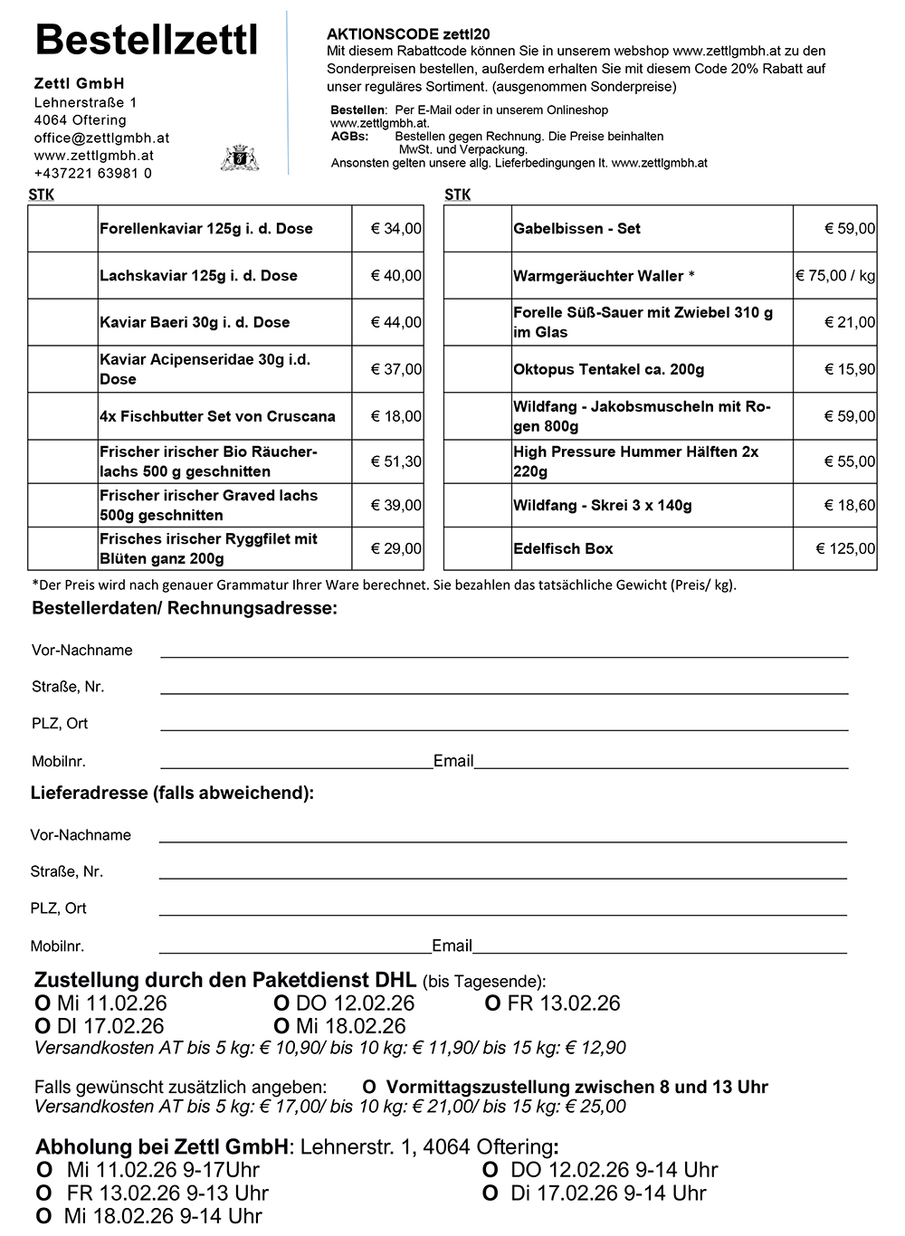 Weiters wird darauf hingewiesen, dass alle MitarbeiterInnen mit dem Aktionscode zettl20 nicht nur die oben genannten Sonderpreise erhalten, sondern auch 20% Rabatt auf das weitere Sortiment im webshop (ausg. bereits vergünstigte Artikel). Von diversen Delikatessen bis hin zu Geschenken für jeden Anlass wird jeder Gourmet garantiert fündig.