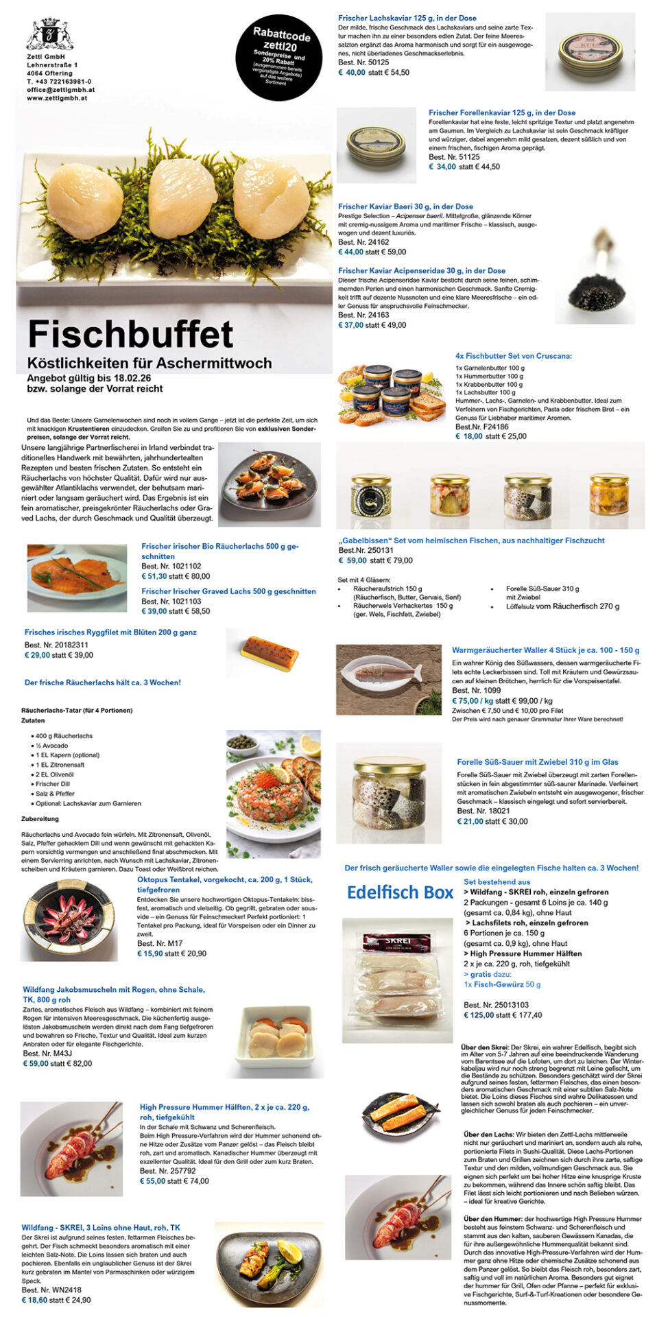 Bis zum Beginn der Fastenzeit erhalten alle städtischen KollegInnen bis zu 35% Rabatt auf köstliche Meerestiere und Fische. Die Bestellung erfolgt direkt bei uns (telefonisch, per Mail oder in unserem webshop), Lieferung und Rechnung gehen direkt zu Handen des Bestellers.
