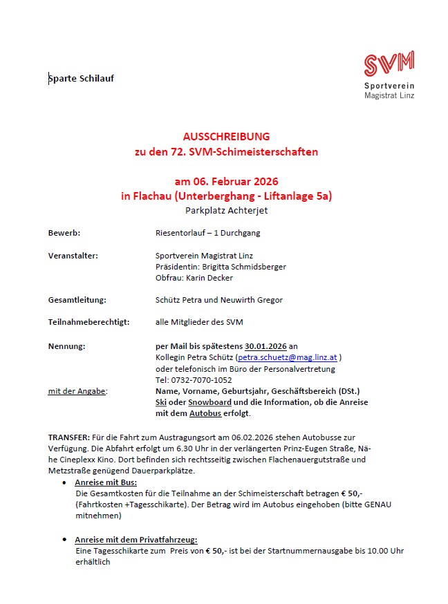 Ausschreibung 72. SVM Skimeisterschaften 2026