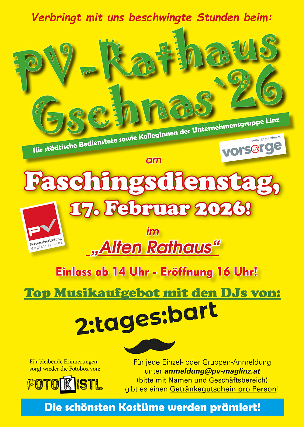 PV Faschingsparty am 17. Februar im Alten Rathaus!