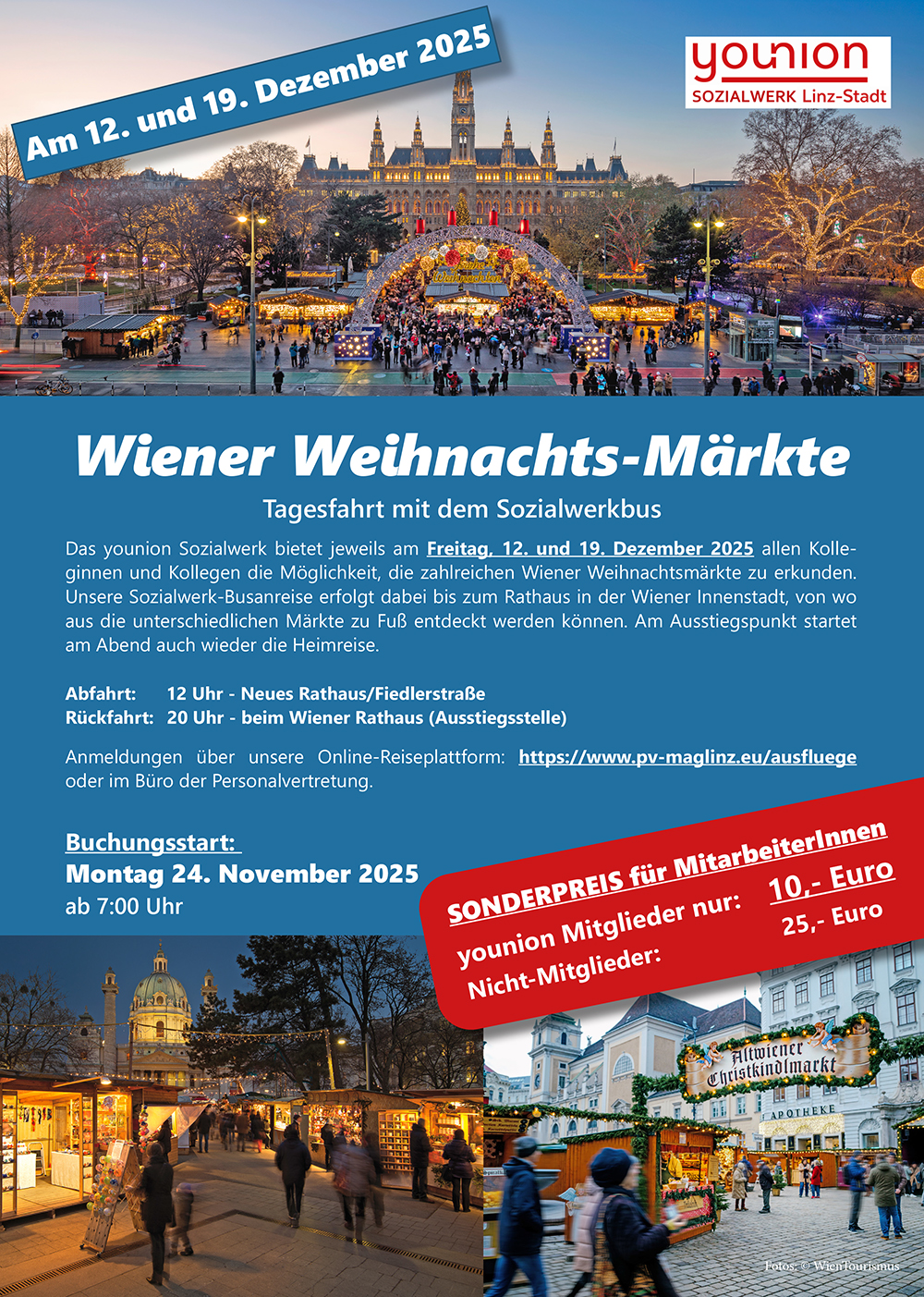 Sozialwerk Ausflugsfahrten zu den Wiener Weihnachtsmärkten!