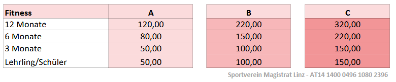 Tarife für eine Mitgliedschaft im SVM Fitness-Studio: