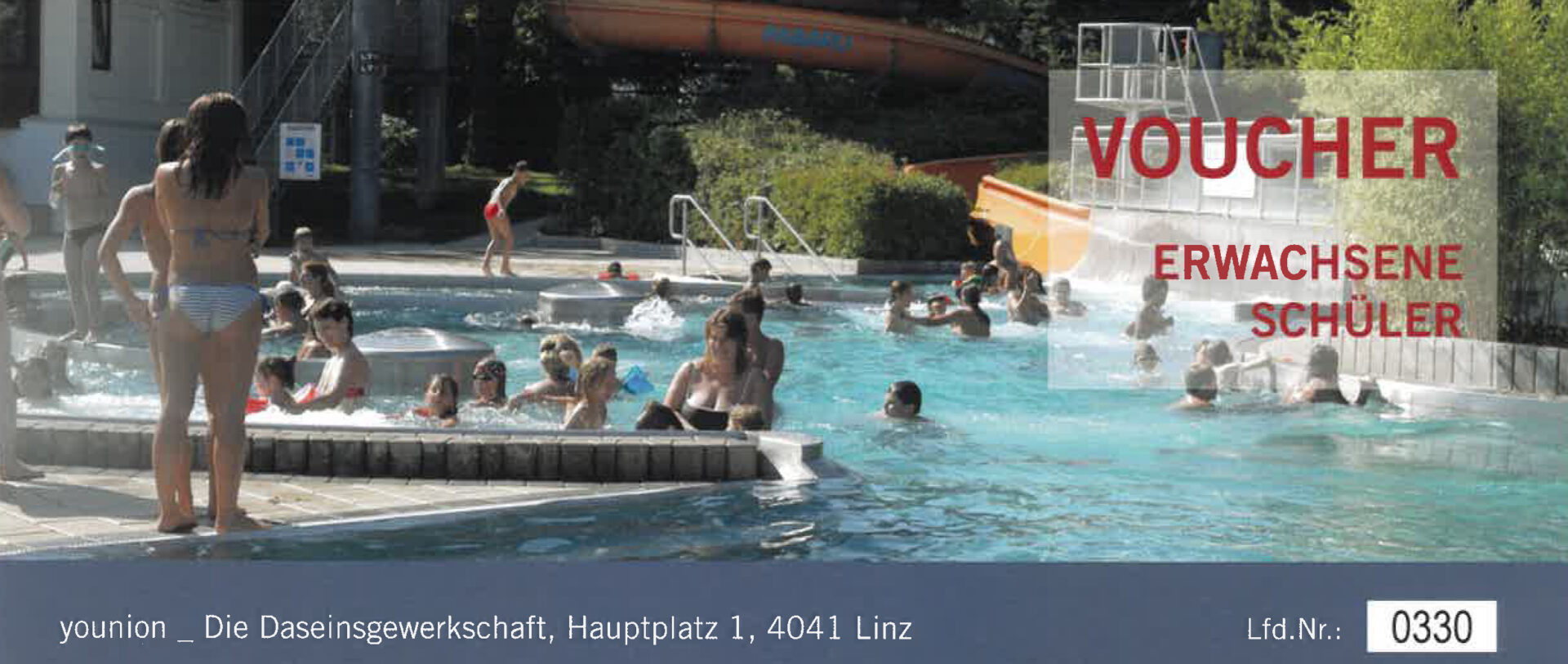 Die younion Bezirksgruppe Linz startet ab sofort mit der Ausgabe der vergünstigten Badekarten für ihre Mitglieder und ihre unversorgten Familienmitglieder (im gleichen Haushalt)!